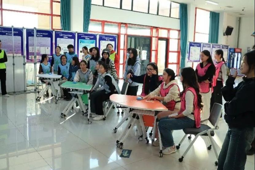汉诺塔是古老智慧的现代演绎,源自印度古老的传说,是锻炼逻辑思维和解决问题能力的绝佳工具。游戏规则要求每队轮流接力,每人每次只能移动一个圆盘,大盘不能放在小盘上,最终将四个圆盘从最左边移动到最右边。每一位参与的同学全神贯注思考每一步的移动策略,试图找到最优解,在大家的聪明才智下每队相继完成了任务。