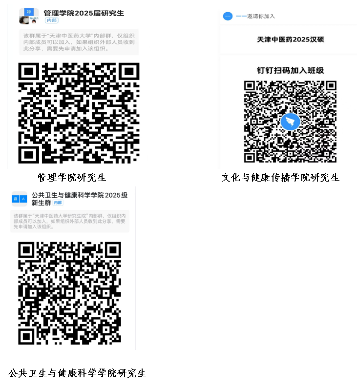 1.请所有新生(除第一附属医院规培研究生外)于7月31日前自行下载钉钉app,扫码入群并随时关注钉钉相关通知。第一附属医院规培研究生由医院负责通知入群。