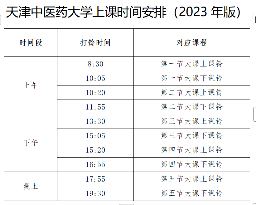 天津中医药大学上课时间安排(2023年版)