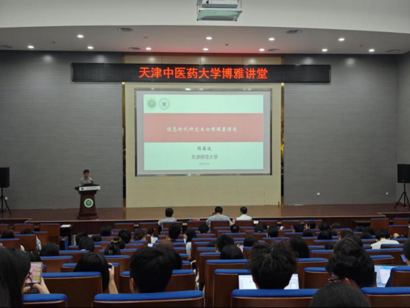 为进一步提升研究生心理健康素养,帮助学生在信息时代中科学调适心理压力,5月21日下午,天津中医药大学党委研工部、研究生院特邀天津师范大学心理学专家杨海波教授,为研究生开展题为《信息时代研究生心理健康调适》的专题讲座。研究生院院长王涛、党委研工部副部长、研究生院党委副书记周璇、管理学院副院长胡文彬及200余名研究生参加活动。活动由研究生院院长王涛主持。