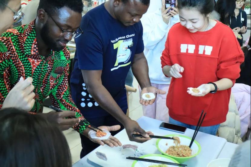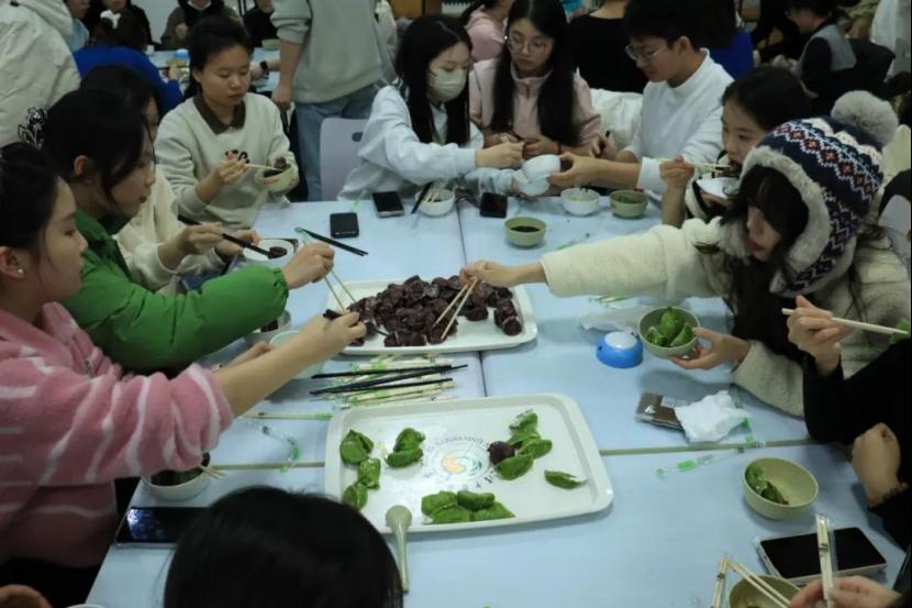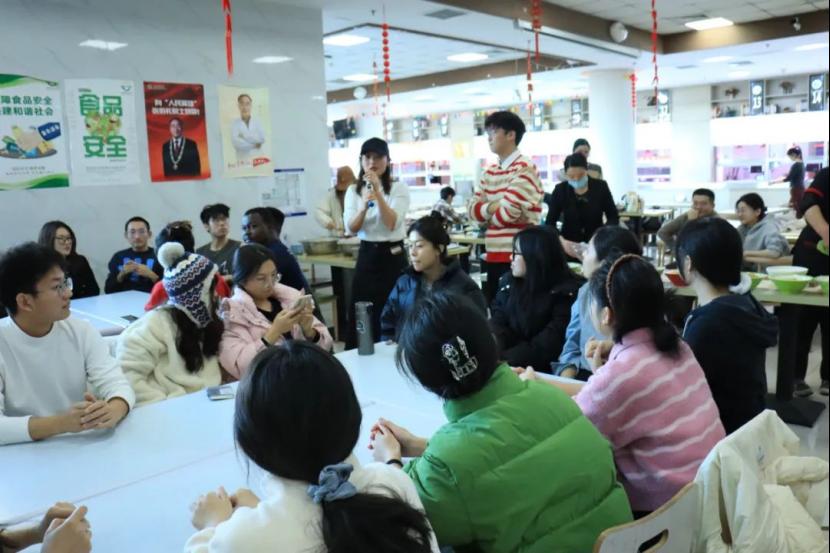 活动伊始,主持人首先讲述了吃饺子作为冬至这一传统节日习俗的历史渊源和象征意义,并设置了互动回答环节,随后来自五湖四海的同学们分享了自己家乡饺子的特色做法以及与之相关的民间故事和传说,让大家深刻感受到饺子背后承载着的温暖和文化传承。